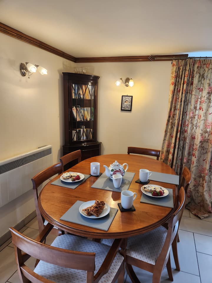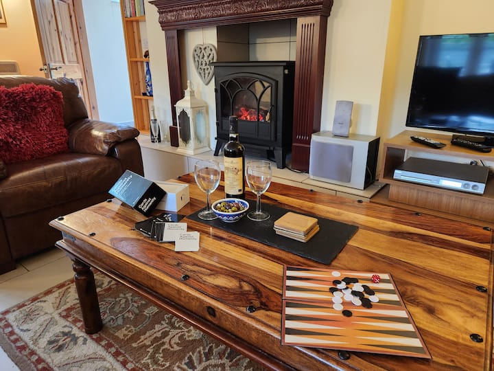 พื้นที่นั่งเล่นมีขนาดใหญ่เปิดโล่งและเบาและมีพื้นกระเบื้องดังนั้นรองเท้าแตะจะเป็นประโยชน์ในการนำมาด้วยบันไดไม้ที่เปิดอยู่ขึ้นจากห้องนี้ไปยังห้องนอน ห้องครัวโอ๊คที่มีสไตล์มีอุปกรณ์ครบครันและมีทุกสิ่งที่คุณต้องการและอยู่ด้านเดียวและพื้นที่นั่งเล่น อีกด้านหนึ่งเป็นพื้นที่นั่งเล่นที่มีเตาผิงที่น่ารักและที่นั่งมากมายพร้อมโซฟาขนาดใหญ่มากและเก้าอี้สองตัวมีทีวีจอแบนฟรีหนังสือดีวีดีข้อมูลนักท่องเที่ยวซีดีเพลงและ wi fi เพื่อความบันเทิงของคุณ โต๊ะรับประทานอาหารอยู่ด้านหลังพื้นที่นั่งเล่นและอยู่ติดกับประตูลานบ้าน เฟอร์นิเจอร์ทั้งหมดเป็นไปตามมาตรฐานสูง