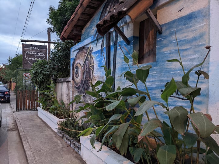 Mano a Mano เป็นความฝันที่เปลี่ยนเป็นความจริงโดย Thyrso และ Luiz จากบราซิล Mano a Mano มีเป้าหมายที่จะเป็นมากกว่าแค่โฮสเทลริมชายหาดใน Las Peñitas นิการากัว เรามุ่งเน้นที่จะเป็นมิตรกับสิ่งแวดล้อมให้มากที่สุดเท่าที่จะเป็นไปได้ ซึ่งส่งผลให้มีโฮสเทลที่เป็นมิตรกับสิ่งแวดล้อมที่สร้างด้วยมืออย่างน่าทึ่ง โดยใช้วัสดุรีไซเคิลและออแกนิก 80% (ไม้ กระเบื้องมุงหลังคา อิฐดิน ไม้ไผ่ ฯลฯ)