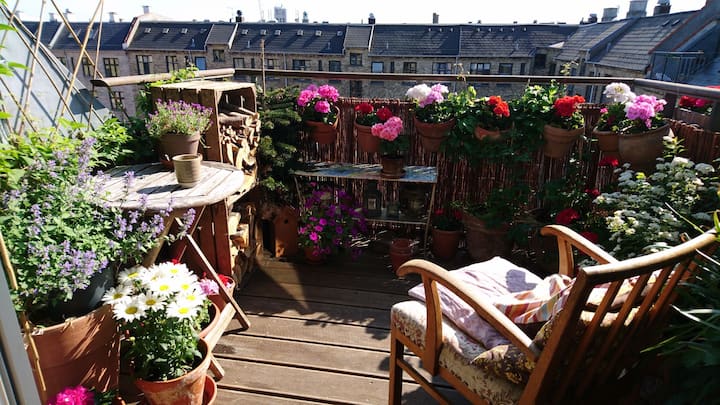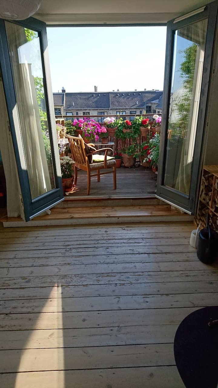 อพาร์ทเมนท์ชั้นบนที่อบอุ่นพร้อมระเบียงสองแห่งในเฟรเดอริกส์เบิร์ก
