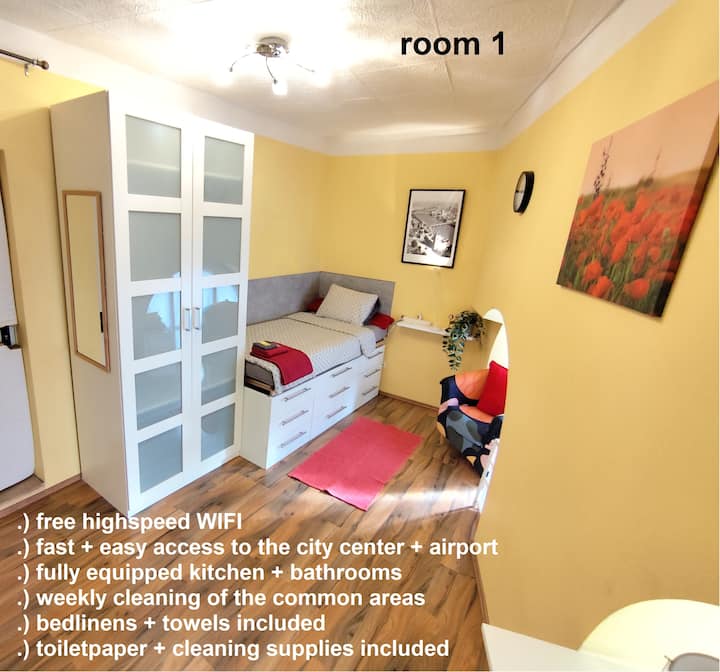 คุณจะได้เข้าพักในแฟลตที่เป็นกันเอง (WG) ที่มีห้องส่วนตัว 8 ห้อง เหมาะสำหรับนักศึกษาและคนทำงานหนุ่มสาว