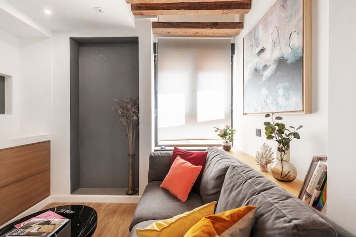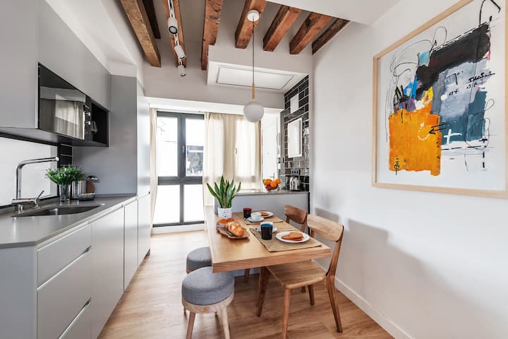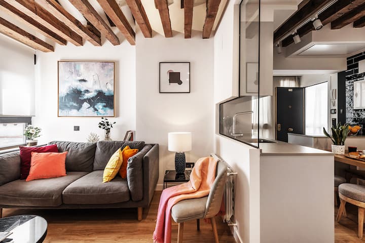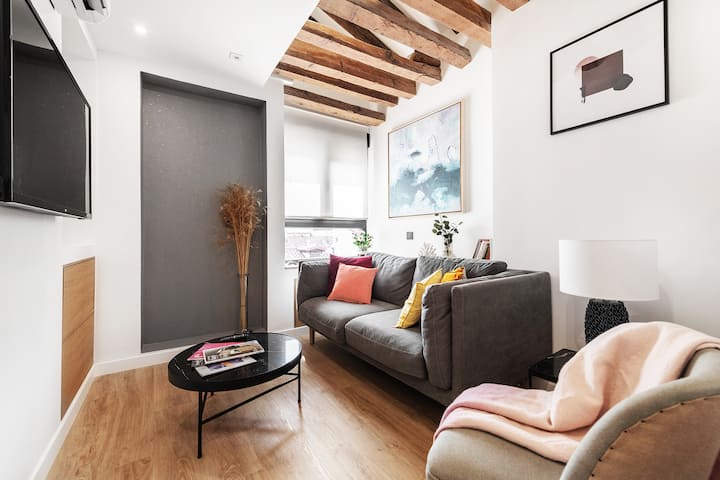 อพาร์ทเมนท์ที่อบอุ่นใจกลางเมืองและได้รับการปรับปรุงใหม่ตั้งอยู่ใจกลางมาดริดใน Tirso de Molina และติดกับย่าน La Latina ที่เป็นสัญลักษณ์ เดินเพียง 10 นาทีจาก Puerta del Sol ตั้งอยู่ถัดจากตลาดหลักแห่งหนึ่งในเมือง Rastro de Madrid อพาร์ทเมนท์มีพื้นที่ประมาณ 55 ตารางเมตรกระจายอยู่ในห้องนั่งเล่น - ห้องครัว - ห้องรับประทานอาหาร 2 ห้องนอนและห้องน้ำ รองรับได้สูงสุด 4 คนจึงเหมาะสำหรับครอบครัว ห้องนั่งเล่นมีโซฟาและสมาร์ททีวี