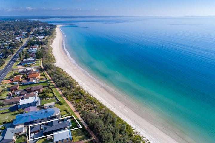 บ้านริมหาดที่สวยงามมีสระว่ายน้ำและอยู่ติดชายหาดคอลลิงวูด!