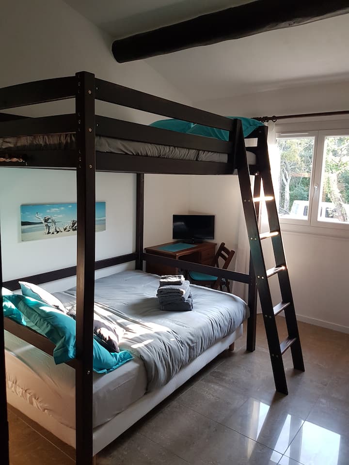 ห้องพักสำหรับ 4 คนที่เงียบสงบใกล้ทะเลและภูเขา