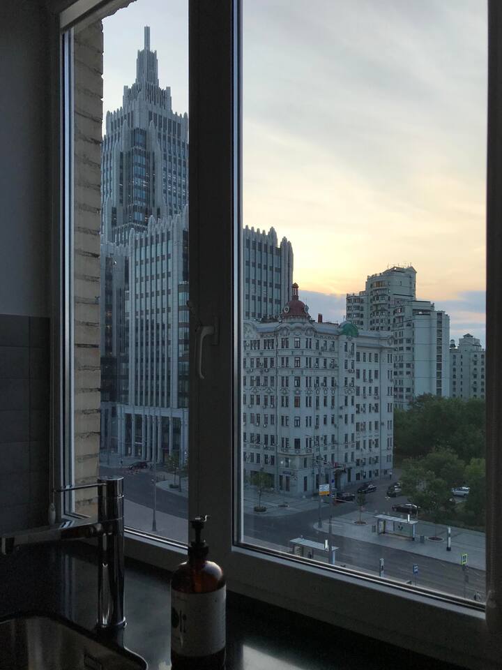 Beautiful bright newly renovated 2 bedroom apartment right in the center of Moscow. All sightseeing’s in the walking distance - Hermitage garden in 100 meters, Bolshoi theater in 10 minutes walk, luxury shopping street and Tsum in 10 minutes walk, one of the best bars in the world (top 50) in 3 minutes walk. Apartment is located directly in the Garden ring but you can sleep well because both bedrooms face the yard. The entrance is safe, has a keypad lock and concierge.