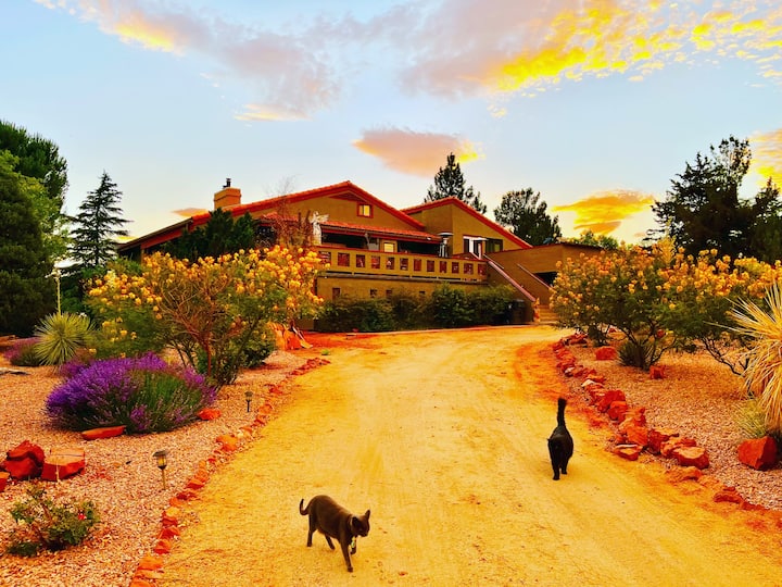 ฉันขอต้อนรับคุณใน LoveLight ของผู้สร้างที่ไม่มีที่สิ้นสุดของเราและยินดีต้อนรับสู่ Casa Remuda Sedona Casa Remuda Sedona เป็นสถานที่พักผ่อนส่วนตัวและสถานที่ศักดิ์สิทธิ์ทางจิตวิญญาณและตั้งอยู่บนเส้น 3 สายถัดจาก Thunder Mountain วิวที่ยอดเยี่ยมของ Mogollon Rim จาก Lizard Head ไปยัง Cathedral Rock บ้านสวยหลังนี้ตั้งอยู่บนแฟลตส่วนตัวขนาด 1 เอเคอร์ที่มีที่จอดรถสำหรับผู้พิการที่อยู่ติดกัน