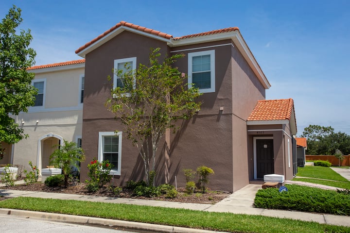 การตกแต่งร่วมสมัยครอบคลุมทาวน์โฮม 4 ห้องนอนพร้อมสระว่ายน้ำส่วนตัวในลานที่ได้รับการคัดกรองในขณะที่รองรับผู้เข้าพักได้สูงสุด 9 คน
