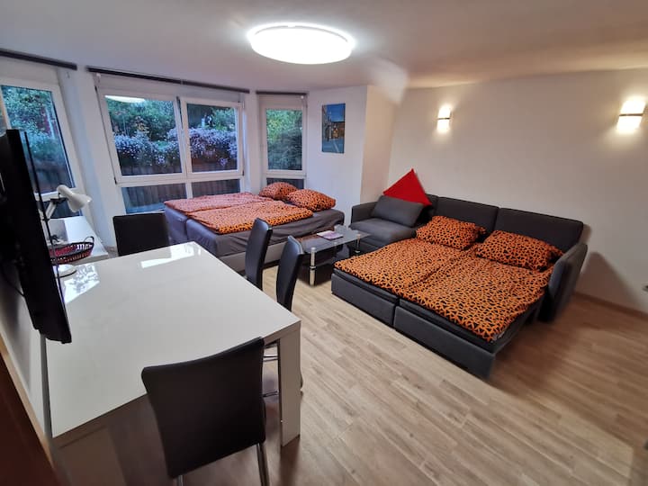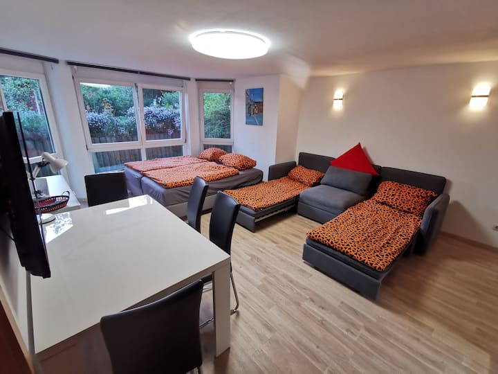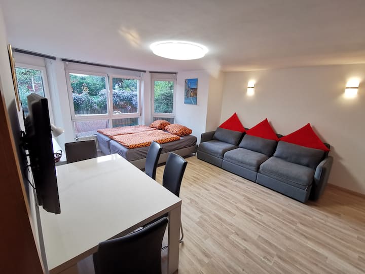 อพาร์ทเมนท์กว้างขวางพร้อมทางเข้าจากสนามหน้าบ้าน ที่จอดรถส่วนตัวห้องครัวห้องน้ำในตัว การพักผ่อนที่ดีที่สุดหลังจากวันทำงานที่งานหรือสำนักงาน โต๊ะรับประทานอาหาร/โต๊ะประชุมสมาร์ททีวีพร้อมการเชื่อมต่อเครือข่ายตู้เสื้อผ้าขนาดใหญ่ การจัดที่นอน: เตียงเดี่ยว 2 หลังและโซฟาเบดสำหรับเตียงแยก 2 หลังหรือเตียงคู่ 1 หลัง