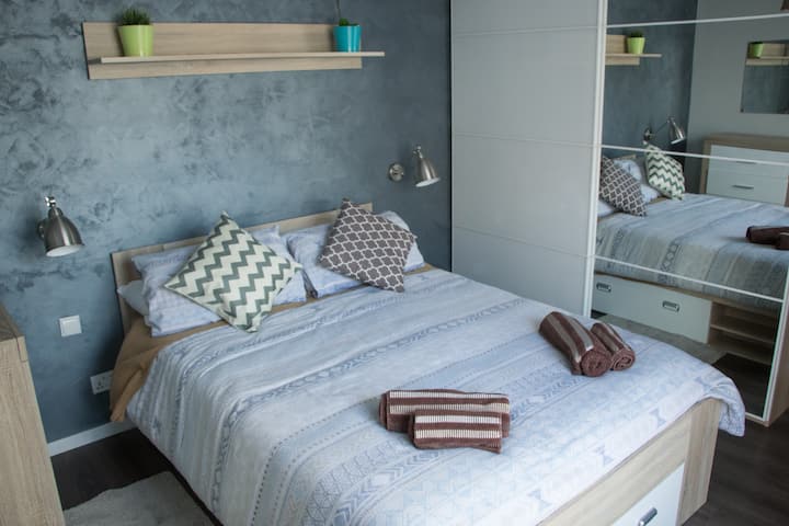 ห้องนอนส่วนตัวอบอุ่นพร้อมระเบียง เครื่องปรับอากาศ | ล็อค