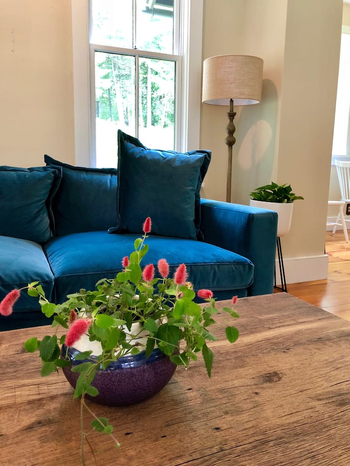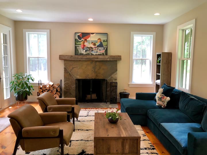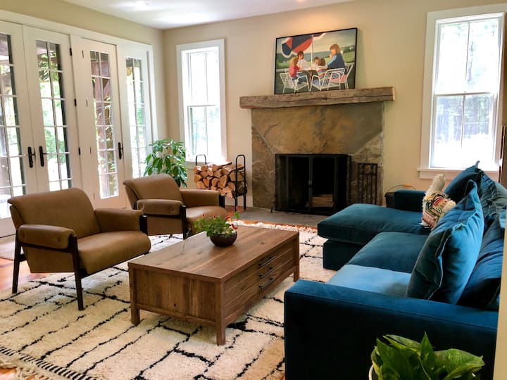 การตกแต่งภายในทั้งหมดได้รับการทาสีใหม่ในเดือนกุมภาพันธ์ 2022 และเฟอร์นิเจอร์และของตกแต่งทั้งหมดเป็นของใหม่รวมถึงผ้าปูที่นอนด้วย ชั้นแรกมีงานศิลปะดั้งเดิมทั้งหมดของศิลปินคนหนึ่งเป็นคอลเลกชันที่สวยงามและพิถีพิถัน การออกแบบทั้งหมดได้รับเลือกโดยคำนึงถึงหน้าที่และสุนทรียศาสตร์เนื่องจากครอบครัวของฉันและฉันชอบใช้เวลาที่บ้านหลังนี้ เฟอร์นิเจอร์ส่วนใหญ่มาจาก Anthropologie (รวมถึงส่วนกำมะหยี่) West Elm และ Crate and Barrel สิ่งของหลายอย่างยังทำด้วยมือจาก Etsy รวมถึงโต๊ะในฟาร์ม (มาจากฟาร์มของครอบครัวในเนแบรสกา) และพรมขนสัตว์ขนาดใหญ่จากโมร็อกโก