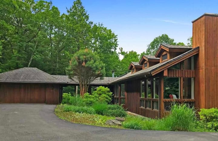 ที่พักที่ได้รับแรงบันดาลใจ "แฟรงค์ลอยด์ไรท์" อันเงียบสงบแห่งนี้สามารถเป็นสถานที่พักผ่อนบนภูเขาส่วนตัวของคุณเองและเป็นสวรรค์ที่สมบูรณ์แบบสำหรับการหลบหนีจากเมือง ระเบียงและดาดฟ้าหลายชั้นได้รับการออกแบบเหมือนบ้านต้นไม้สุดหรูทำให้รู้สึกราวกับกำลังนอนหลับอยู่บนก้อนเมฆ ที่พักแห่งนี้มอบการพักผ่อนและผ่อนคลายด้วยผลการบำบัดของธรรมชาติที่หน้าประตูของคุณและเป็นฉากหลังที่น่าทึ่ง คุณจะได้รับแรงบันดาลใจจากความสวยงามและความสงบที่รอคุณอยู่จากทุกมุมของที่พัก!