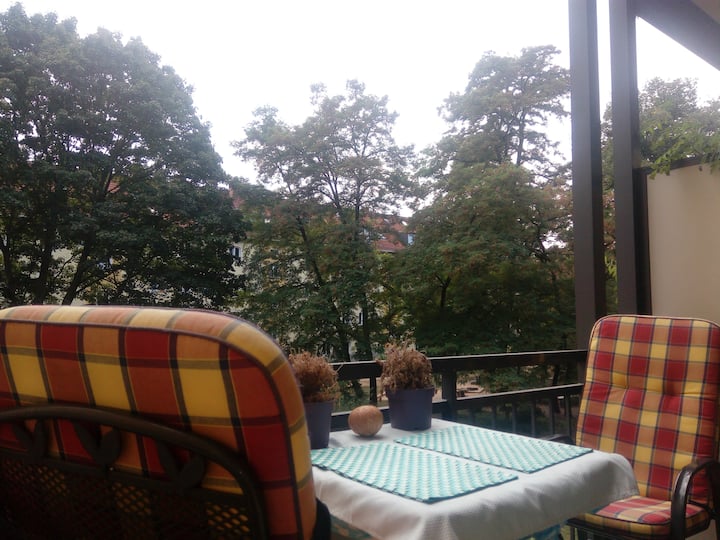 อพาร์ทเมนท์มีเสน่ห์พร้อมระเบียงขนาดใหญ่ในใจกลางเบอร์ลิน