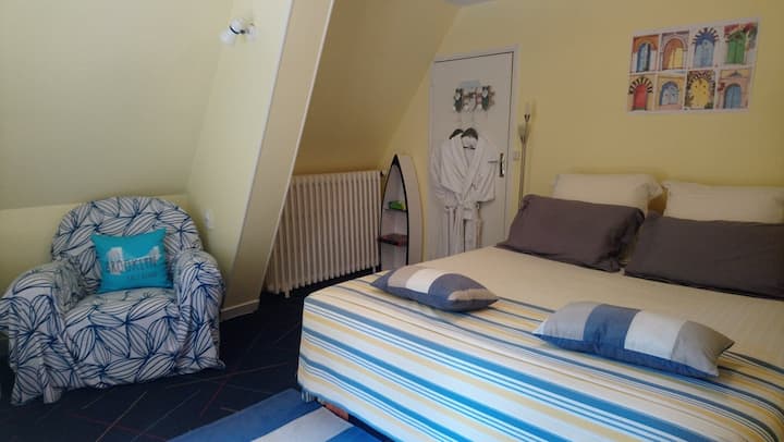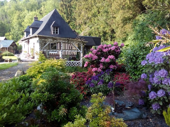 บ้านสไตล์นอร์มังดี มีอาหารเช้า ห้องน้ำส่วนตัว และสวนที่มีต้นไม้