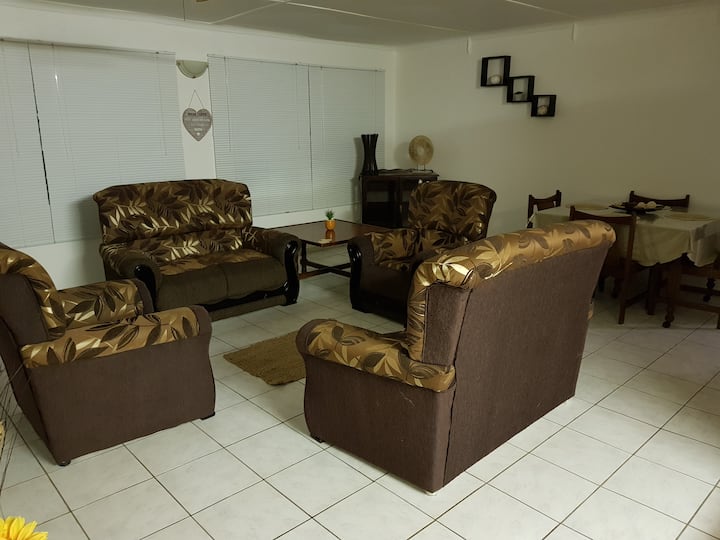 African Dwarf Kingfisher Guesth - Malachite unit ประกอบด้วยบ้าน 2 ห้องนอนพร้อมเลานจ์ ห้องครัวแบบเปิด และวิวสวยงามของสวน ห้องน้ำ 1 ห้องสำหรับใช้ร่วมกันสำหรับครอบครัว