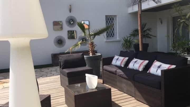 สตูดิโอที่มีเสน่ห์ในวิลล่าพร้อมสปาและสระว่ายน้ำ