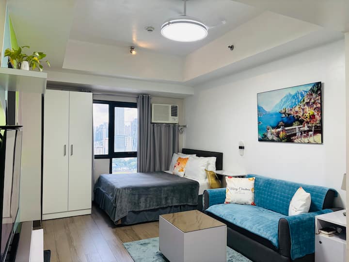 เราตั้งอยู่ที่ชั้น 26 หันหน้าไปทางทิศใต้ 180 องศาของวิวสนามกอล์ฟสีเขียวที่ผ่อนคลายทางทิศใต้ภายใน Camp Aquinaldo, PNP Camp Crame, ORTIGAS, BGC, Makati CBD skylines และถนนที่น่าหลงใหลของ EDSA