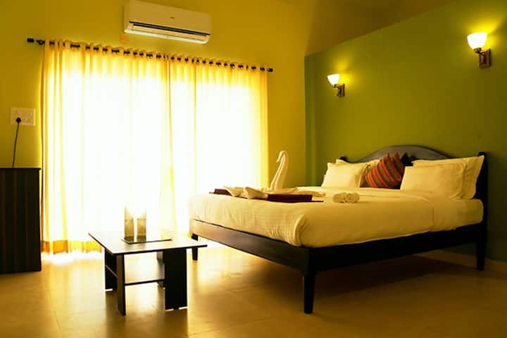 คอทเทจปรับอากาศพร้อมระเบียงและวิวสวนที่วากาเตอร์ โกอา