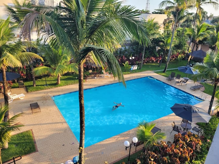 นี่เป็นหนึ่งในที่พักไม่กี่แห่งของย่านนี้ที่มีสระว่ายน้ำ