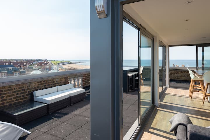 อพาร์ทเมนท์บนดาดฟ้าที่ยอดเยี่ยมพร้อมวิวทะเลที่สวยงาม