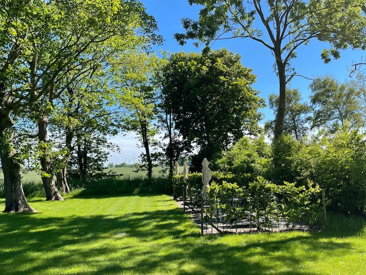 - บ้านพักตากอากาศที่มีที่นั่งกลางแจ้งใน Dornum
