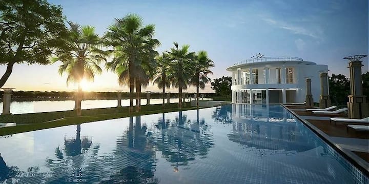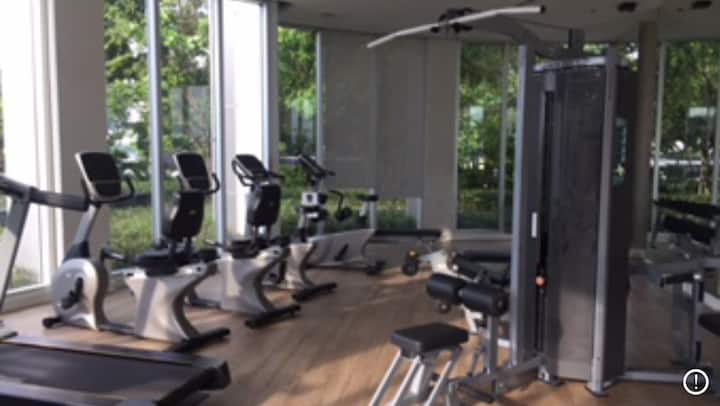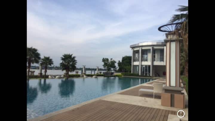 สระว่ายน้ำขนาดใหญ่ริมแม่น้ำ ห้องออกกำลังกาย MRT วิวดี