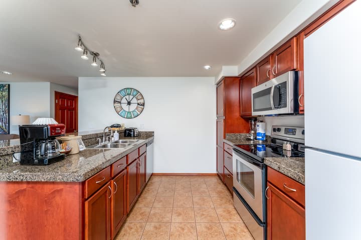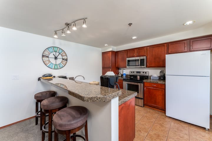 คอนโด 2 ห้องนอน 2 ห้องน้ำนี้นอนได้ถึง 6 คนสบายๆ เพลิดเพลินกับเตียงคิงไซส์ในห้องนอนใหญ่ส่วนตัวพร้อมอ่างอาบน้ำในตัวสุดหรูเตียงควีนไซส์ในห้องนอนส่วนตัวที่สองและโซฟาปรับนอนที่สะดวกสบายในพื้นที่นั่งเล่น