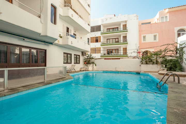 นี่เป็นหนึ่งในที่พักไม่กี่แห่งของย่านนี้ที่มีสระว่ายน้ำ