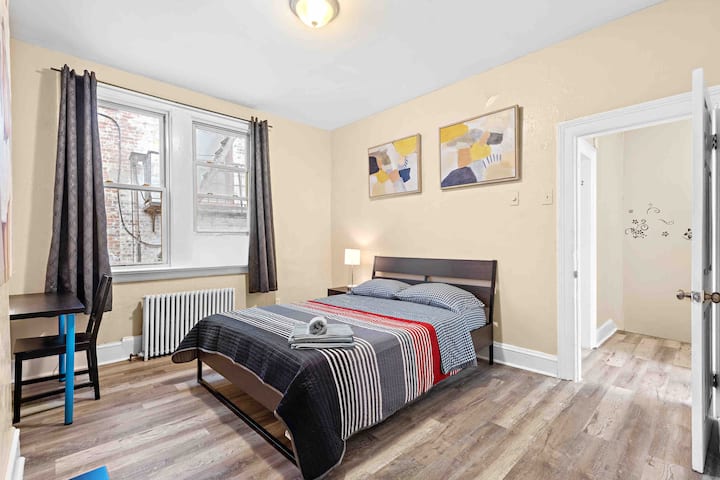 ห้องใหญ่ ตู้เสื้อผ้าแบบวอล์คอินขนาดใหญ่ เดิน 8 ม. ไปยัง PATH มี Wi-Fi