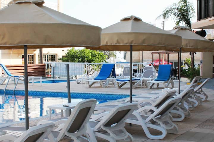 นี่เป็นหนึ่งในที่พักไม่กี่แห่งของย่านนี้ที่มีสระว่ายน้ำ