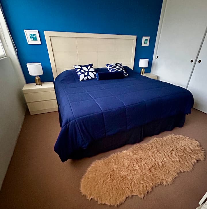 ห้องนอน KS ที่สะดวกสบายในอพาร์ทเมนท์กว้างขวาง ห่างจาก WTC 3 ช่วงตึก