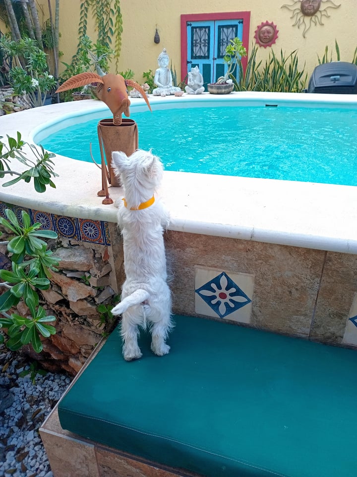 นี่เป็นหนึ่งในที่พักไม่กี่แห่งของย่านนี้ที่มีสระว่ายน้ำ