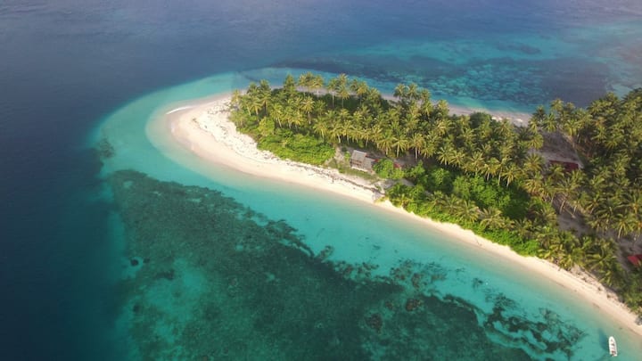 ตั้งอยู่บนจุดหาดทรายขาวอันเงียบสงบล้อมรอบด้วยต้นมะพร้าวน้ำใสมีการว่ายน้ำการดำน้ำตื้นและการตกปลาที่ยอดเยี่ยม