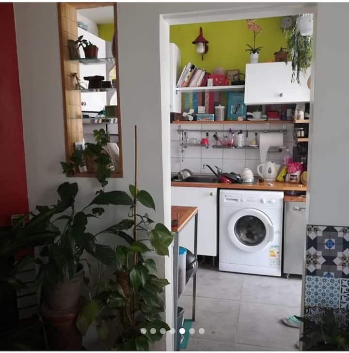 ความพิเศษของที่พัก: สวนหลังบ้านเล็กๆโต๊ะใต้องุ่น