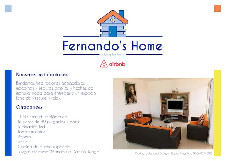 Mi nombre es Fernando Asmat y seré tu anfitrión. He viajado por muchos lugares incluyendo Canadá, México, Colombia, Ecuador, Chile, Argentina y otros más. Cuento con estudios en inglés básico y español. Soy pescador aficionado, además de administrador jubilado. Mi esposa y yo estaremos a su disposición para hacer de su experiencia única.