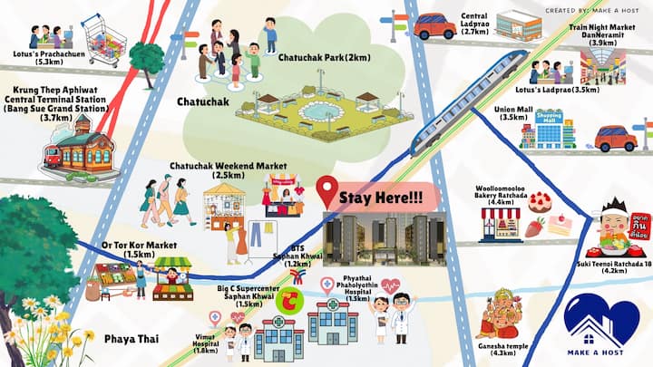 สตูดิโอที่มีสไตล์ใกล้ตลาดจตุจักร BTS MRT บิ๊กซี