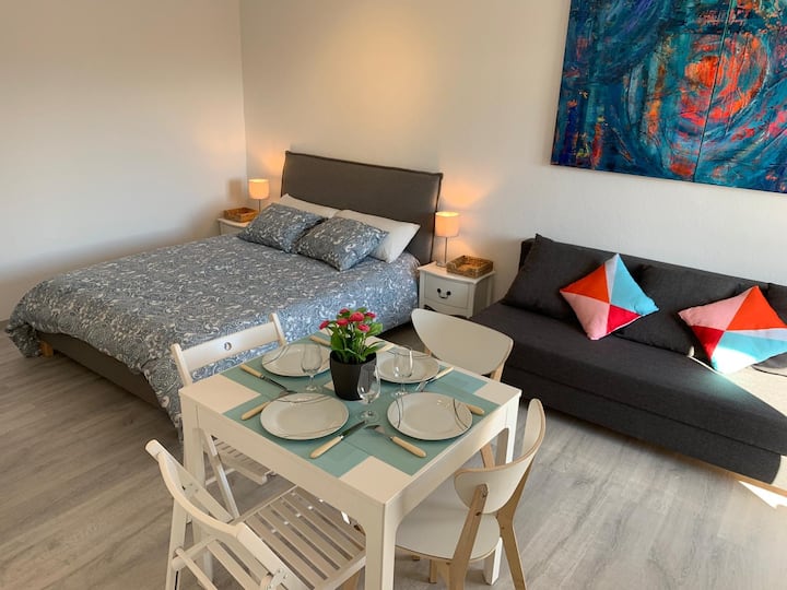 สตูดิโอพร้อมเครื่องปรับอากาศ ระเบียง และที่จอดรถส่วนตัว