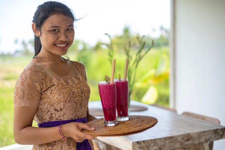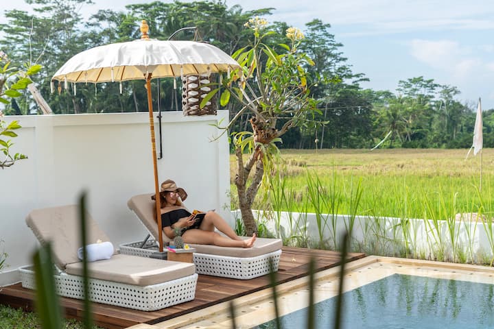 วิลล่า 2 ห้องนอนพร้อมวิวทุ่งนาและสระว่ายน้ำส่วนตัว