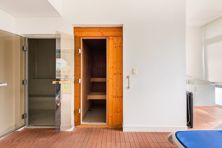 ผ่อนคลายไปกับที่อาบน้ำฝักบัวกลางแจ้งและซาวน่า