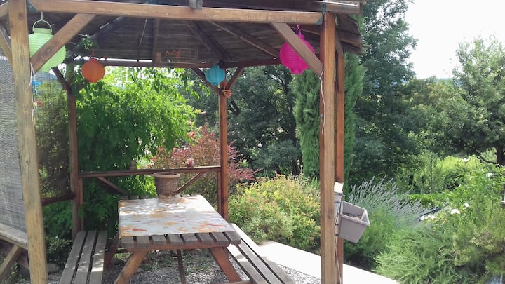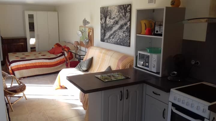 สตูดิโอที่มีแสงแดดและเงียบสงบพร้อมสวนและสระว่ายน้ำ