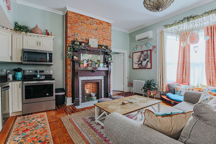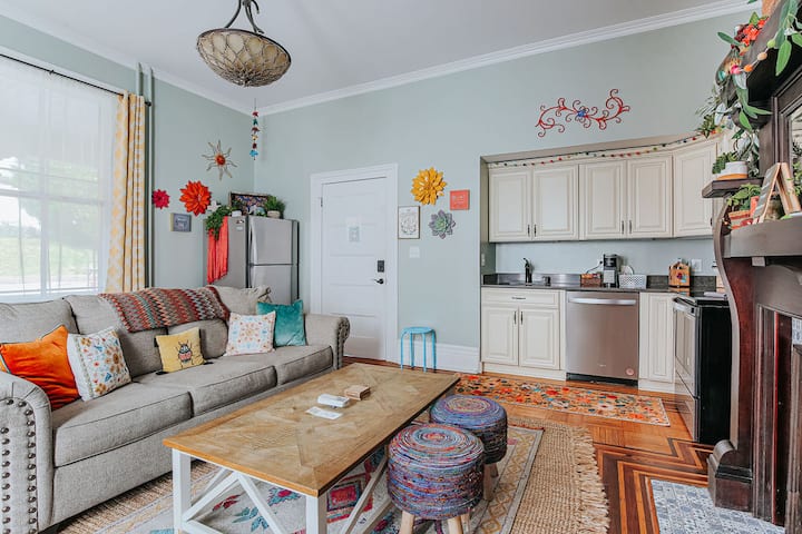 ห้องชุดโบฮีเมียนตั้งอยู่ที่ชั้นแรกของบ้านและเป็นอพาร์ทเมนท์ 1 ห้องนอน 1 ห้องน้ำที่รองรับได้สูงสุด 4 คน หมายเหตุ: นี่เป็นอาคารที่มีหลายยูนิต ไม่ใช่บ้านเดี่ยวสำหรับครอบครัว ที่นี่มีที่พัก Airbnb ที่ได้รับการปรับปรุงใหม่อย่างสวยงามอีก 4 แห่ง โปรดทราบว่าเราไม่มีพนักงานประจำในที่พัก ผู้เข้าพักทุกคนจะต้องเคารพที่พักและมีมารยาทต่อผู้อื่นโดยปฏิบัติตามช่วงเวลาที่ต้องเงียบสงบตั้งแต่ 22.00 น. - 7.00 น.