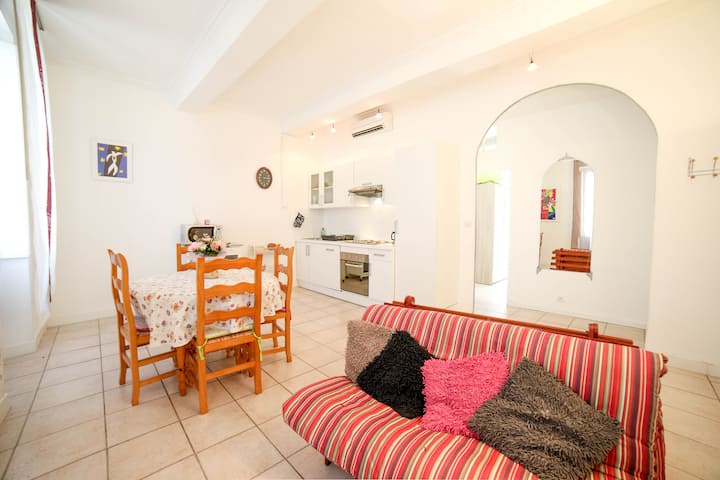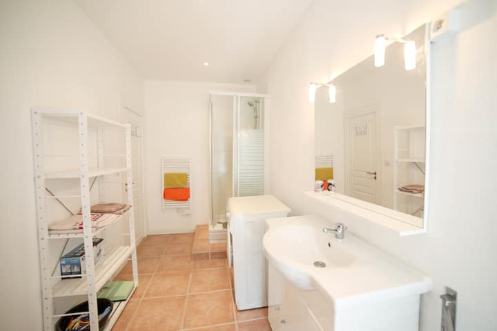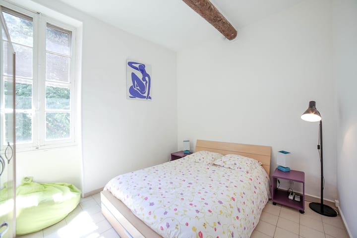 ในบ้าน "ขนาดใหญ่" และสวยงามที่มีเอกลักษณ์ (18°) ซึ่งฉันอาศัยอยู่เพียงบางส่วน Jens และฉันได้เลือกที่จะตกแต่งอพาร์ทเมนท์นักท่องเที่ยวสองห้อง มิโรและมาติส ขนาด 45 ตร.ม. ได้รับการปรับปรุงและตกแต่งใหม่ต้อนรับคุณด้วยความสะดวกสบายทั้งหมดในใจกลางหมู่บ้านโพรวองซัลที่มีเสน่ห์ เรามีความสุขมากที่ได้แบ่งปันอารมณ์ของชาวเยอรมัน Bretons หรือ Alsatians... ต่อหน้าความงดงามของ Vaucluse ของเรา