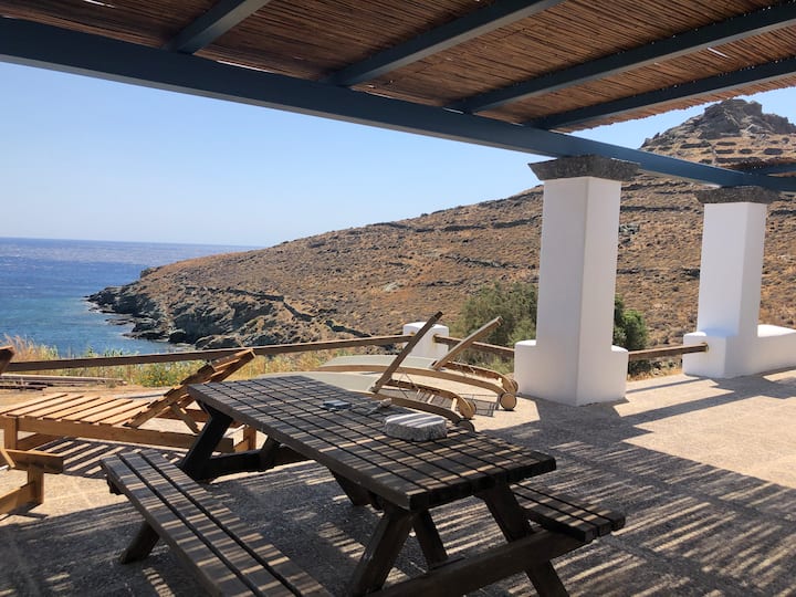 ด้วยพลังบวกและความเมตตาฉันพร้อมให้บริการคุณเพื่อช่วยให้คุณมีวันหยุดที่สวยงามเงียบสงบชวนฝันครอบครัวหรือโรแมนติกในบ้านในอุดมคติห่างจากทะเล 30 เมตรมองเห็นทะเลอีเจียนที่ยอดเยี่ยมในความเงียบสงบแต่ห่างจากใจกลางเมืองทีนอสและท่าเรือเพียง 3 กม....