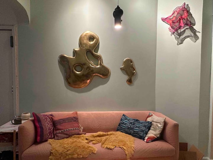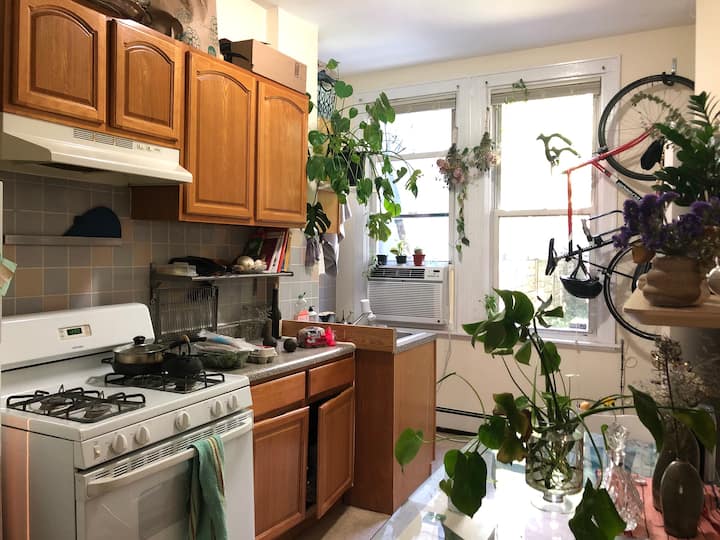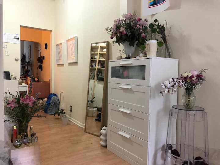 สวัสดี ฉันเป็นนักออกแบบที่อาศัยอยู่ในคลินตันฮิลล์ เพิ่งเรียนจบเมื่อ 2-3 ปีที่แล้ว ย่านนี้เต็มไปด้วยนักออกแบบหนุ่มสาวเนื่องจากสถาบันแพร็ตต์อยู่ห่างออกไปไม่กี่ช่วงตึก ฉันเป็นคนเป็นระเบียบและสะอาดมาก ต้องการต้อนรับผู้คนที่บ้านของฉันที่จะปฏิบัติต่อที่พักนี้เหมือนเป็นของตัวเอง เกิดและเติบโตในเปรู คุณจะพบต้นกำเนิดละตินอเมริกาของฉันบางส่วนในการตกแต่งและสีสันของฉันที่บ้าน