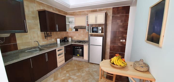 ใกล้แฟลตมาก เรามีร้านอาหาร คุณสามารถเพลิดเพลินกับกิจกรรมต่างๆ เช่น ไคท์เซิร์ฟ ขี่อูฐ หรือเช่ารถสี่ล้อ ชายหาดอยู่ห่างจากที่พักเพียง 50 เมตรและเดินไปยังเมดินาได้ใน 10 นาทีตามทางเดินเล่นริมทะเล คุณจะมีสิ่งอำนวยความสะดวก เช่น ลิฟต์ ความเป็นไปได้ในการเรียกแท็กซี่ที่เชื่อถือได้เพื่อเดินทางไป/จากมาร์ราเคช ที่จอดรถ เช็คอินส่วนตัว Wi-Fi… ทั้งหมดนี้และอื่น ๆ อีกมากมายคือสิ่งที่เรามีให้ทุกคนที่เข้าพักในอพาร์ทเมนท์ที่สวยงามของเรา!
