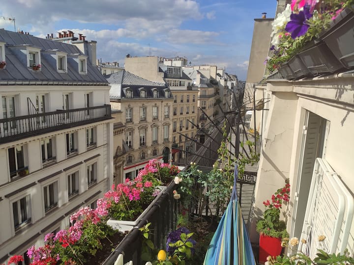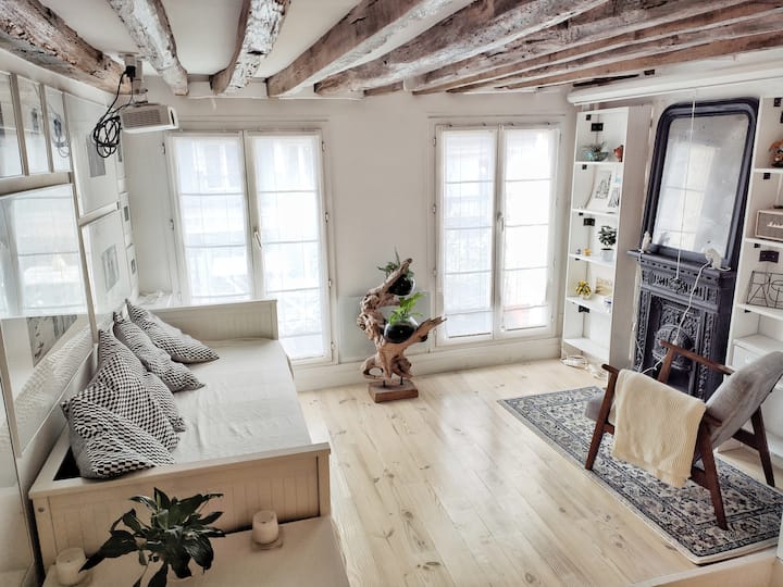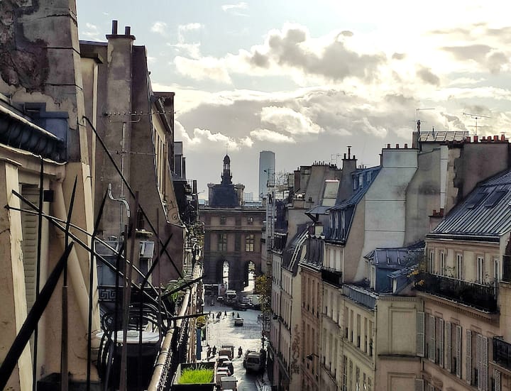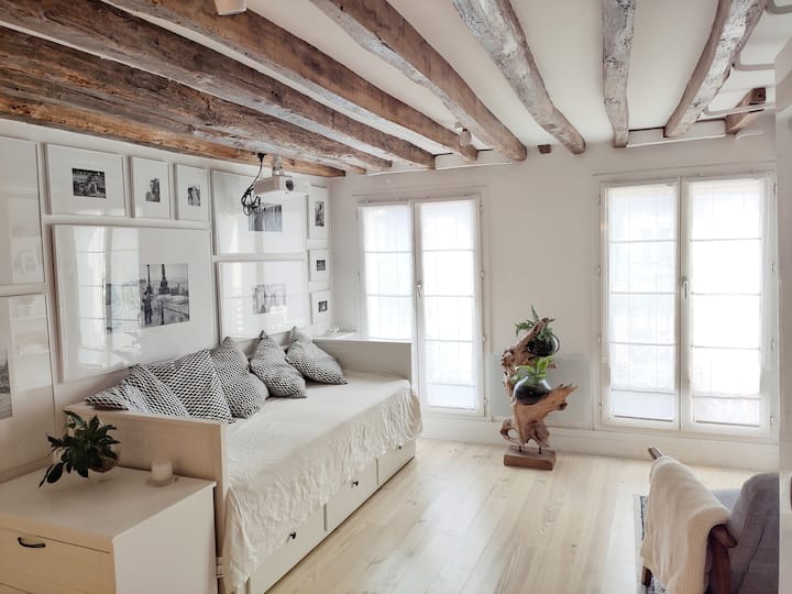 เพลิดเพลินกับการเข้าพักสุดหรูในสไตล์ปารีสในสตูดิโอใจกลางเมืองพร้อมระเบียง🌿 ลิฟท์🛗 และเตาผิงโบราณ🕯️ อยู่ห่างจากแลนด์มาร์คสัญลักษณ์เพียงไม่กี่ก้าว!