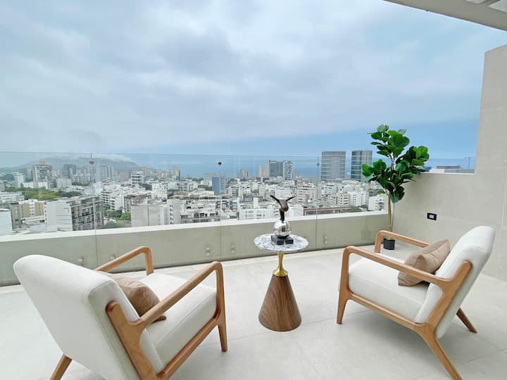 เพนท์เฮาส์มีราโฟลเรส วิวทะเล เครื่องปรับอากาศ เตียงคิงไซส์