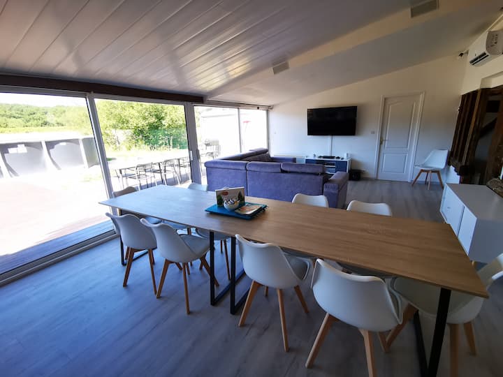 บ้านพร้อมสระว่ายน้ำและเครื่องปรับอากาศ อยู่ห่างจากช็องบูร์ 10 นาที