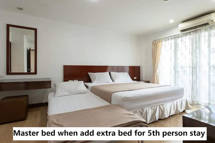 5 คน: เพิ่มเตียงเสริม 1 เตียงในห้องนอน 1