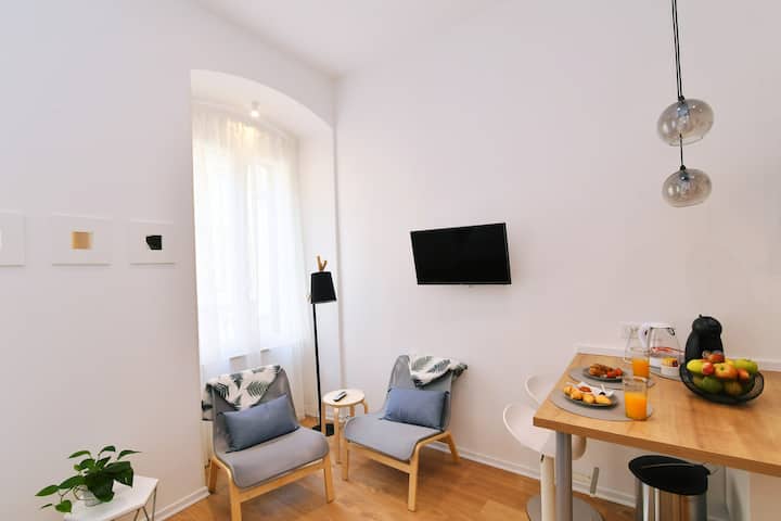 สตูดิโอโรแมนติกหรืออพาร์ทเมนท์ที่มีเสน่ห์สำหรับ 4 คนพร้อมห้องนอนห้องนั่งเล่นและระเบียงจะตอบสนองทุกความต้องการของคุณ