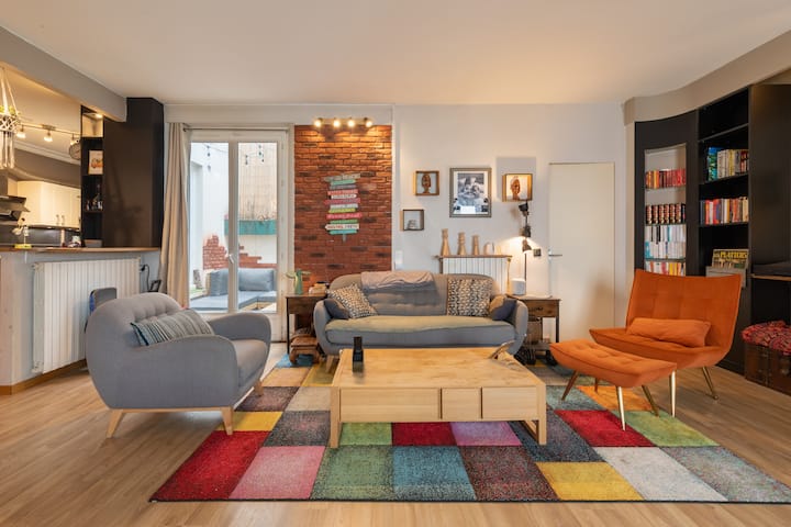 ค้นพบดูเพล็กซ์ขนาด 120 ตารางเมตรของเราที่ Place de la Nation เหมาะสำหรับประสบการณ์ปารีสที่แท้จริง ห้องนั่งเล่นสไตล์ลอฟท์สดใสพร้อมห้องครัวแบบเปิดโล่งและลานบ้านที่ไม่เหมือนใคร มีห้องนอนที่เงียบสงบ 2 ห้องและห้องน้ำ 2 ห้องเพื่อความสะดวกสบายสูงสุด ตั้งอยู่เหนือสตูดิโอเต้นรำให้บริการที่พักที่ไม่เหมือนใครและไม่เหมือนใคร ตั้งอยู่ในทำเลที่ยอดเยี่ยมใกล้เมโทร 1, 2, 6, 9, RER A เหมาะสำหรับการสำรวจเมือง จองเพื่อประสบการณ์ที่น่าจดจำในเมืองแห่งแสงสี