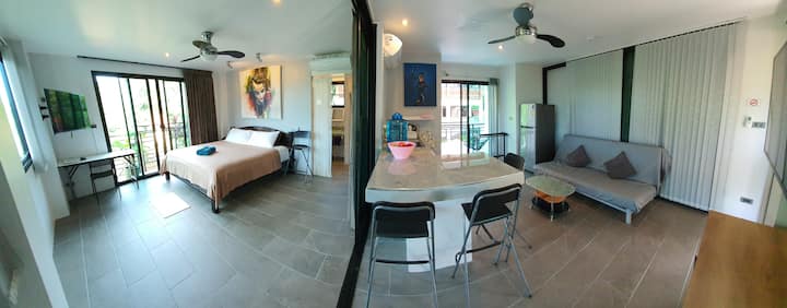 ทั้ง 2 ห้อง: สมาร์ททีวีพัดลมเพดานเครื่องปรับอากาศหน้าต่างและประตูกระจกเพื่อรับแสงที่ดีและอากาศบริสุทธิ์พร้อมมุ้งลวดกันยุง